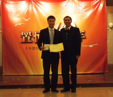 姚毅總經理為置恒十周年“奉獻獎”獲得者周虎頒獎